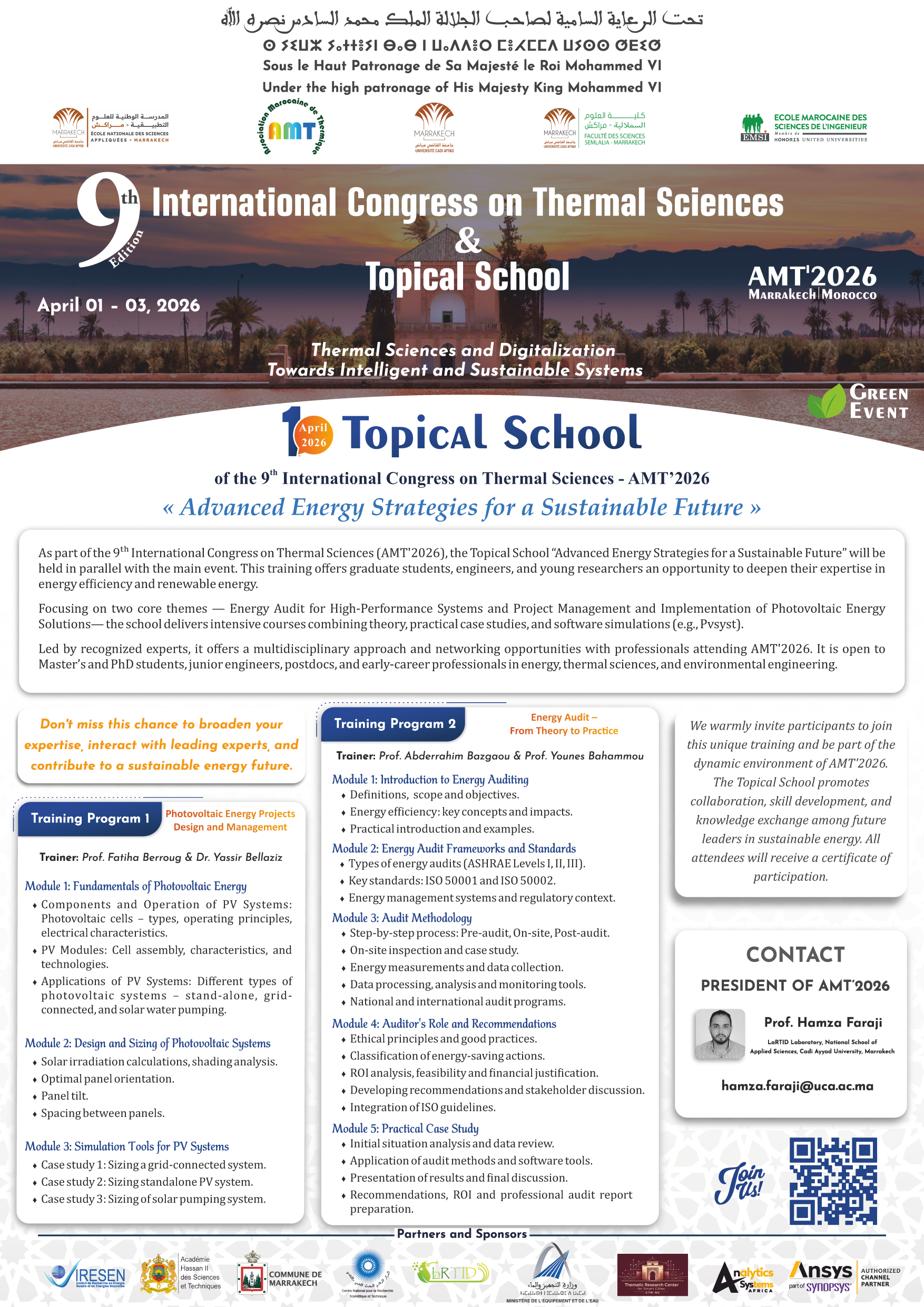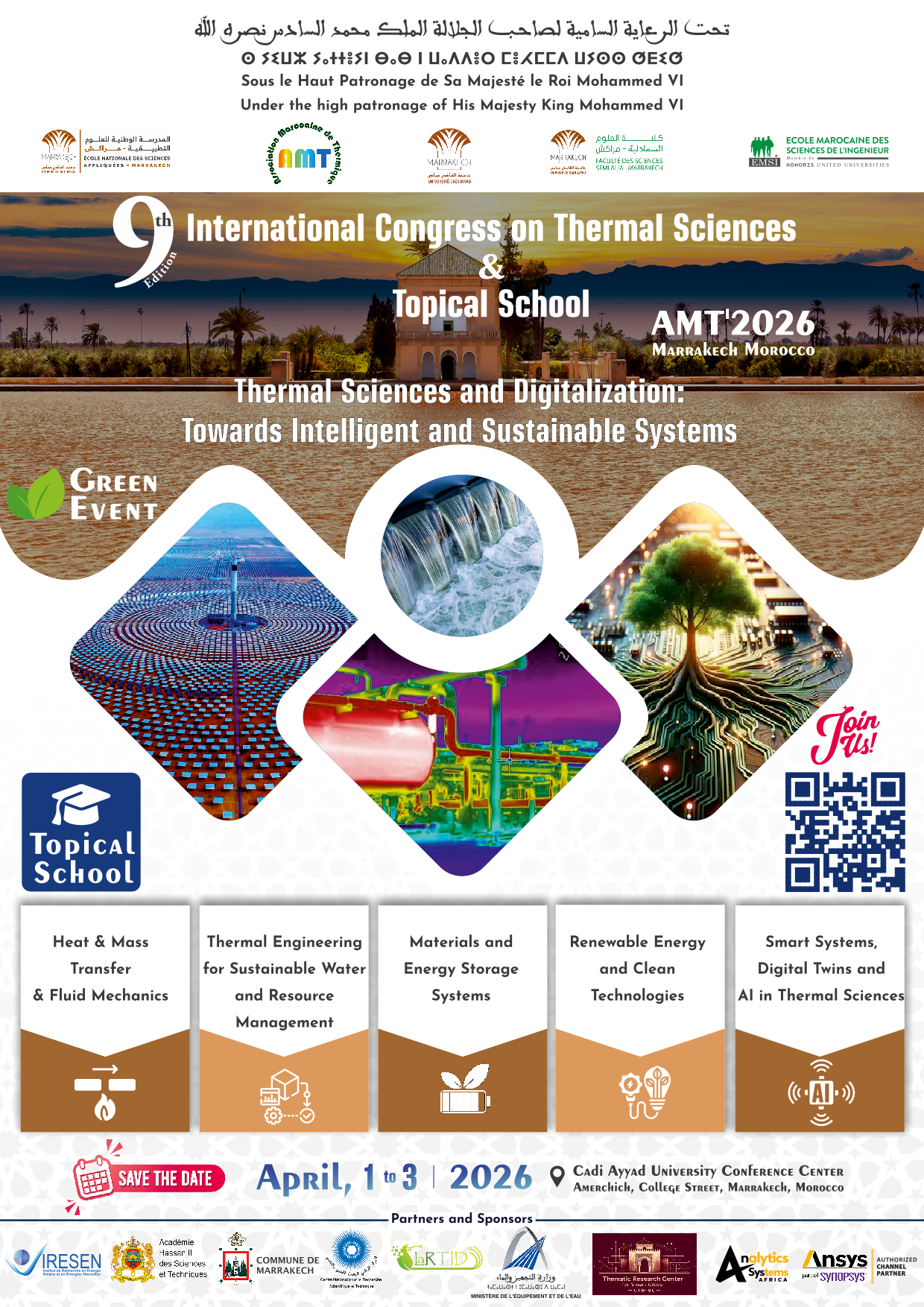 We are pleased to announce the 9ᵗʰ edition of the International Congress on Thermal Sciences – AMT’2026, which will take place in the vibrant and historic city of Marrakech, Morocco. Over the years, AMT congress series has become a key scientific meeting for thermal science experts, engineers, researchers, and industrial stakeholders.